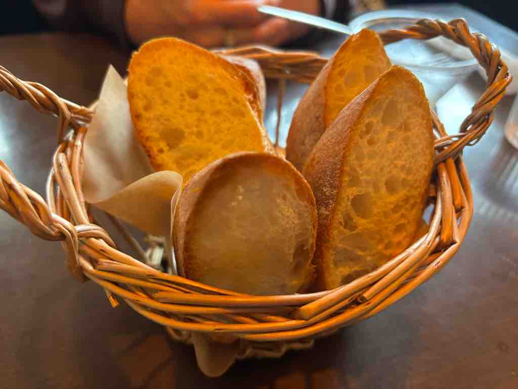 サラダが美味い店は信用できる確率が高く、パンも火を入れたばかりの香ばしさ。