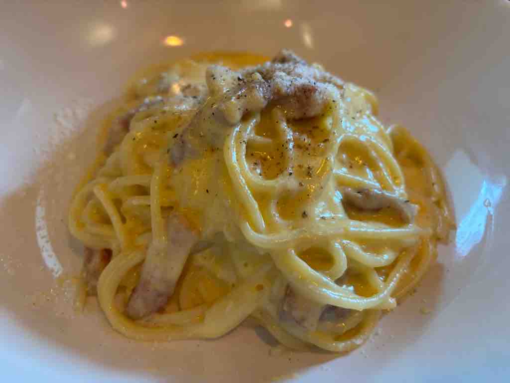 妻と友人は、しらすと地海苔のアーリオオーリオにカルボナーラ。