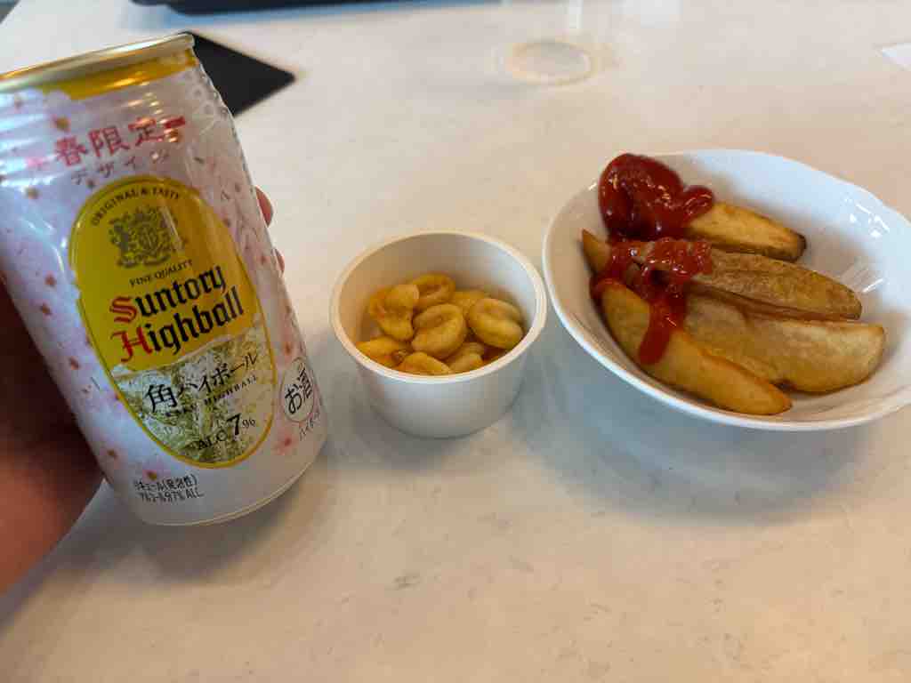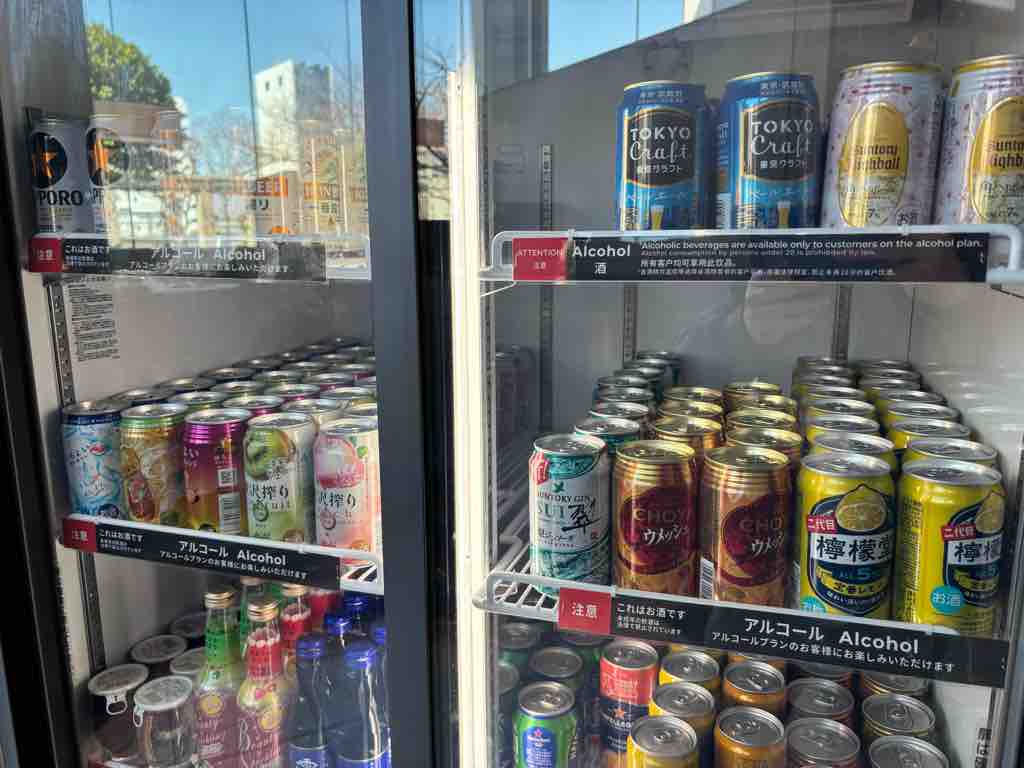 宮崎は最初の1時間はアルコールプランにしたので、缶ビール・缶ハイボール・炭酸日本酒の小瓶などゲット。
