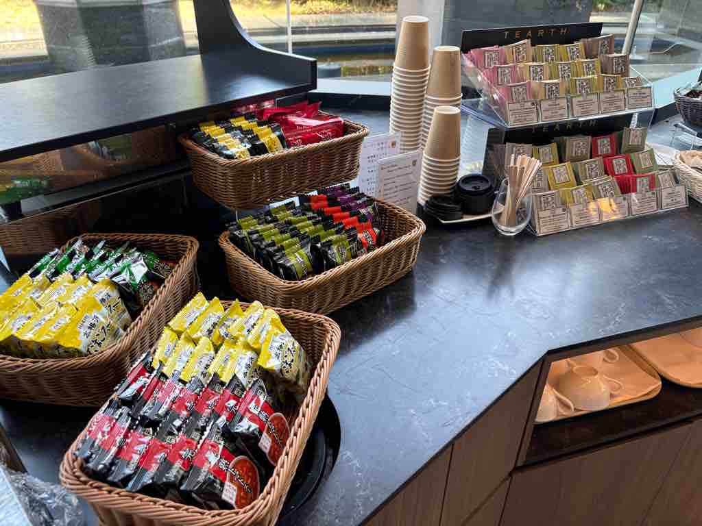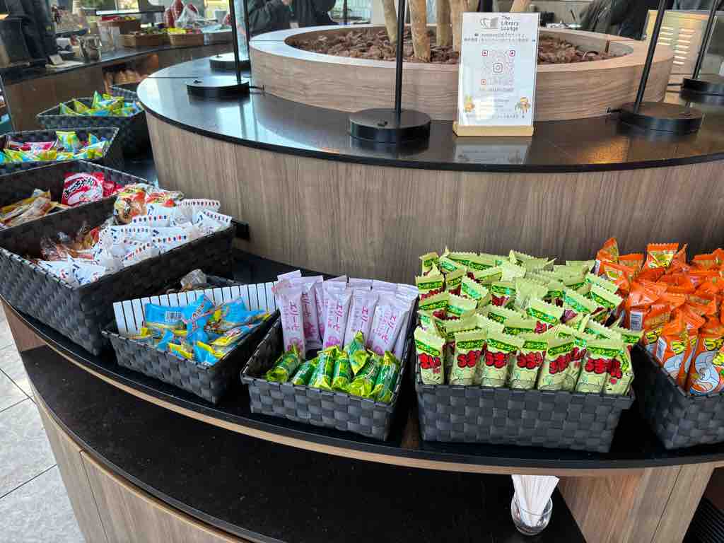 しかも、お菓子類・珈琲や紅茶・スープ・ナッツ類・ゼリー・アイス・紙パックの豆乳やら・冷凍食品(ライスバーガー・タコ焼きなど)が食べ放題。